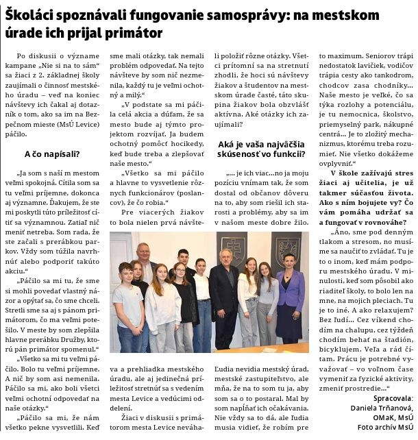 Zdroj: Novinky z Levickej radnice, Ročník XXII, č. 2, september 2024